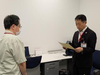 7月17日、前年度に活躍した社員を表彰する推奨状贈呈式を新宿郵便局会議室で執り行いました。今年の受賞者は19名。相河社長より推奨状と副賞の品を受け取りました。ますますのご活躍を期待しています。